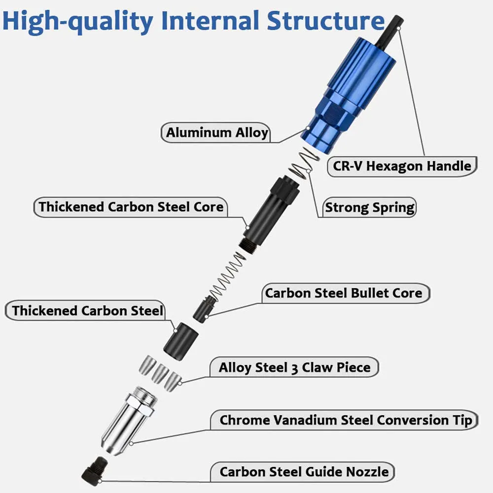 - Feature 6: Cordless Riveting Gun Drill Tool Aluminum Alloy Adapter Accessories